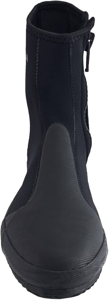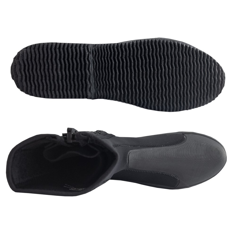 Botines profesionales de neopreno para buceo en aguas templadas o frías, con espesor de 5 mm, cremallera lateral YKK con solapa interna y suela rígida antideslizante. Aislamiento térmico, tracción firme y soporte estructural para entornos marinos exigentes.
