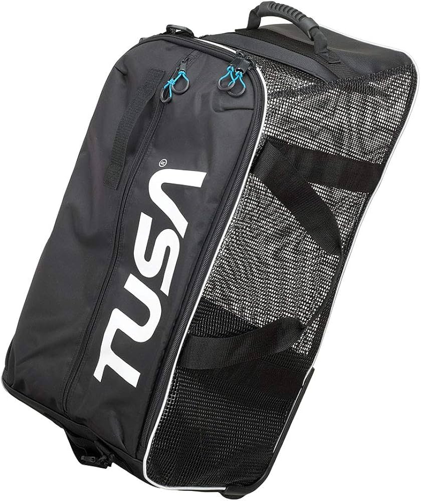 La TUSA BA-0301 es una maleta de transporte con diseño tipo malla, ideal para guardar y transportar equipo de buceo, snorkel o natación. Su estructura permite drenaje completo y circulación de aire, facilitando el secado de trajes, aletas, escarpines o accesorios mojados. Liviana y compacta, es perfecta para centros de buceo, viajes diarios o almacenamiento en casa.